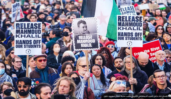 كما أشار المحتجون إلى أن اعتقال خليل هو هجوم على حرية التعبير، حيث شهدت البلاد احتجاجات متزايدة ضد ما يعتبرونه قمعًا للناشطين المؤيدين لفلسطين.