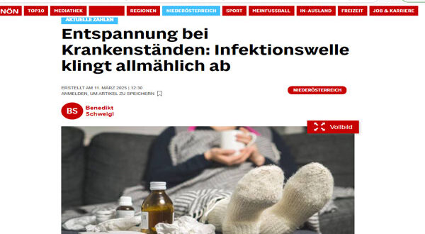 سجلت النمسا السفلى انخفاضًا في عدد الإصابات بالإنفلونزا خلال الأيام الماضية، حيث أعلن صندوق التأمين الصحي النمساوي (ÖGK) أن حوالي 1,350 شخصًا مؤمَّنين لديه اضطروا إلى ملازمة الفراش بسبب الفيروس، مقارنة بـ 1,600 حالة في الأسبوع السابق. ورغم هذا التراجع، لا تزال الأعداد مرتفعة مقارنة بالمعدلات المعتادة.