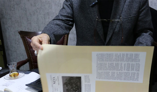 تتناثر على سطح مكتبه بعض من الكتب الكبيرة المفتوحة المليئة بصور مطبوعة لمثل تلك القصاصات والصور التي جمعها من وسائل إعلام تركية على مدار عقود، يوثق العالم من زاويته الخاصة، ويرى في مهمته هذه واجباً مقدساً.