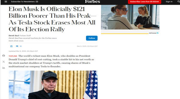 في غضون شهرين فقط، خسر ماسك حوالي 121 مليار دولار، وهو ما يعكس تراجعًا حادًا في أداء أسهم تسلا. هذه الخسارة الكبيرة تثير تساؤلات حول مستقبل الشركة وقدرتها على الحفاظ على موقعها الرائد في سوق السيارات الكهربائية.