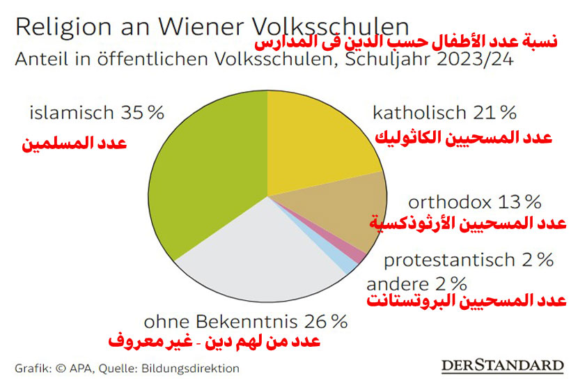 عدد التلاميذ داخل المدارس النمساوية حسب الدين