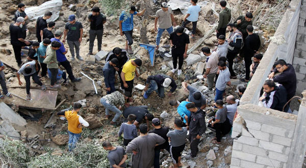 فلسطينيون يبحثون في الأنقاض عن مصابين أو شهداء بعد قصف للاحتلال في غزة