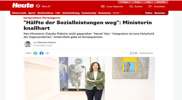 في مقابلة حصرية مع صحيفة Heute النمساوية، أوضحت بلاكولم، التي تتولى أيضًا وزارات أوروبا والأسرة في حكومة المستشار ستوكر، أن الحكومة الجديدة تضع رؤية واضحة لعملية اندماج المهاجرين في المجتمع. وأكدت:
