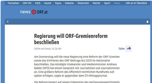 تتجه الحكومة النمساوية إلى إقرار إصلاحات شاملة في هيئة الإذاعة والتلفزيون النمساوية (ORF) يوم الخميس، تشمل إعادة هيكلة هيئاتها وتجميد رسومها حتى عام 2029. جاء هذا الإعلان على لسان نائب المستشار ووزير الإعلام، أندرياس بابلر، خلال لقائه مع الصحفيين، حيث أشار إلى أن هذه التعديلات تأتي استجابةً لقرار المحكمة الدستورية بشأن تقليص النفوذ الحكومي داخل ORF، مع وعد بإصلاح أوسع للإعلام العام في المستقبل.