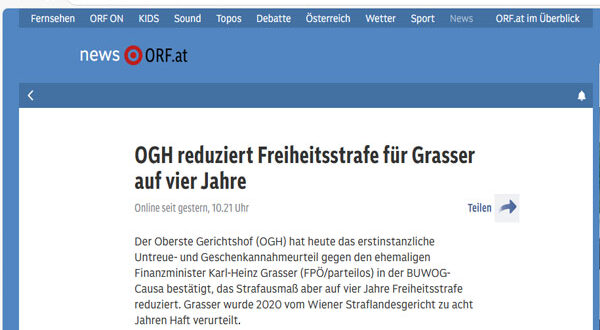 في قرار تاريخي حاسم، أعلنت المحكمة العليا في النمسا تخفيض عقوبة السجن بحق وزير المالية الأسبق، كارل-هاينز جراسر، من ثماني سنوات إلى أربع سنوات. جاء الحكم بعد إدانته بتهمتي خيانة الأمانة وقبول الهدايا في قضية “بوفوج”، وأصبح القرار نهائيًا، مع ضرورة دخول جراسر السجن خلال الأسابيع الأربعة المقبلة.