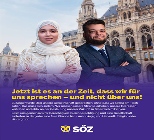 نداؤنا اليوم هو دعوة لكل ناخب نزيه: شاركوا في بناء مستقبل أفضل لفيينا. صوتكم لحزب “نمسا المستقبل الاجتماعي” يعني صوتًا للتغيير الإيجابي، يصون قيم الانفتاح والتعددية، ويساهم في رسم خارطة طريق أكثر إشراقًا لأمتنا. فلنكن معًا، يدًا بيد، لبناء فيينا تحتفل بالتنوع وتكرم كل ثقافة، ولنجعل من عيد الفطر مناسبة وطنية تجمعنا على المحبة والتآلف.