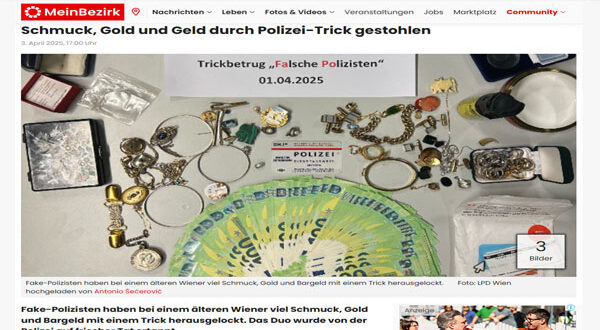 في عملية أمنية دقيقة، نجحت شرطة فيينا في كشف شبكة احتيال خطيرة استخدمت حيلة “الشرطة المزيفة” للإيقاع بالضحايا، مستهدفة كبار السن وسرقة أموالهم وممتلكاتهم. وتمكنت قوات الأمن من إلقاء القبض على شخصين متورطين في هذه الجرائم، حيث تم ضبطهما متلبسين خلال تنفيذ عملية احتيال على مسن يبلغ من العمر 77 عامًا.
