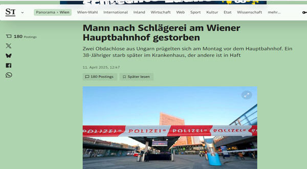 في حادثة مأساوية هزّت مدينة فيينا، تحوّل نزاع بسيط بين رجلين بلا مأوى إلى مأساة دامية، انتهت بوفاة أحدهما في وقت لاحق من الحادث. فقد شهدت محطة القطار الرئيسية في حي “فافوريتن” مساء يوم الاثنين الماضي شجارًا عنيفًا بين رجلين يحملان الجنسية الهنغارية، ما أسفر عن إصابة أحدهما بجروح قاتلة في الرأس.