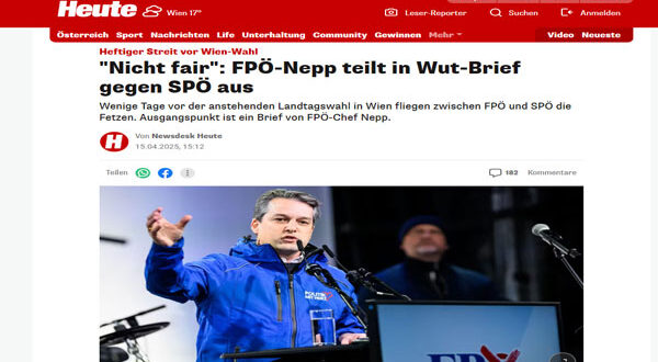 مع اقتراب موعد انتخابات مجلس الولاية في فيينا، تصاعدت حدة التراشق السياسي بين الحزب الاشتراكي النمساوي (SPÖ) وحزب الحرية اليميني (FPÖ)، حيث وجّه زعيم حزب الحرية في فيينا، دومينيك نيپ، انتقادات لاذعة في رسالة مفتوحة، متهماً الاشتراكيين بعدم الإنصاف تجاه المتقاعدين، وداعيًا الناخبين إلى تغيير وجهة التصويت حتى أصبحت فيينا تحت حكم الاشتراكيين عاصمة الغلاء والتهميش