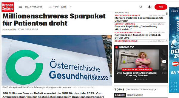 في الوقت الذي ما تزال فيه أجواء عيد الفصح ماثلة في الأذهان، تستعد الحكومة النمساوية لخوض جولة صعبة من المفاوضات حول الميزانية، وهي جولة قد يكون الخاسر الأكبر فيها هو المواطن العادي، وتحديدًا المرضى المؤمن عليهم. فبحسب التقديرات الرسمية، من المتوقع أن تسجل الهيئة النمساوية للتأمين الصحي (ÖGK) عجزًا يصل إلى 900 مليون يورو خلال عام 2025، ما دفعها إلى مناقشة إجراءات تقشفية تمس الخدمات الصحية بشكل مباشر.
