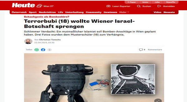 في مشهد يُجسّد تزحلق خطر التطرف الهادئ تحت السطح بسبب أفعال إسرائيل فى غزة ، ألقت شرطة النمسا القبض على شاب يبلغ من العمر 18 عامًا، وُصف بأنه “طالب مثالي” وهاوٍ للعبة الشطرنج، بعد الاشتباه في تخطيطه لهجومين إرهابيين في قلب فيينا: أحدهما على السفارة الإسرائيلية، والآخر على مركز إسلامي شيعي.