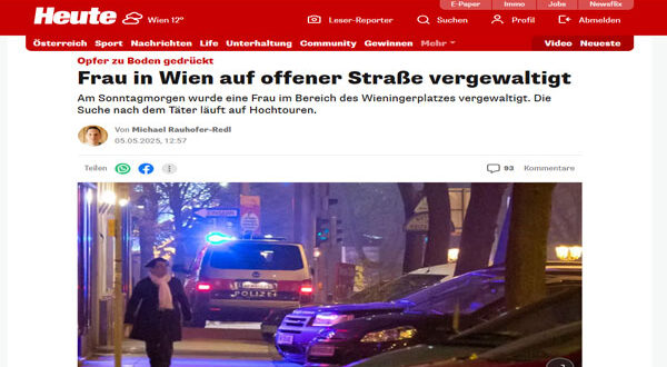 شهدت العاصمة النمساوية فيينا، صباح الأحد، جريمة مروعة هزّت الرأي العام، حيث تعرّضت سيدة للاغتصاب في الشارع العام بمنطقة رودولفسهايم-فنفهاوس، وبالتحديد في محيط ميدان فينينغر (Wieningerplatz). الحادثة وقعت في حوالي الساعة الرابعة فجراً، بينما كانت الضحية في طريق عودتها إلى منزلها.