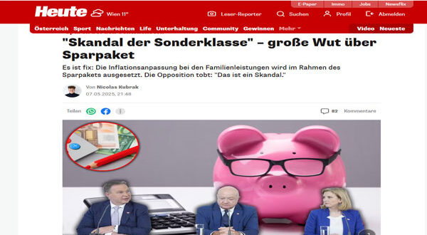 ومن المنتظر أن يعرض وزير المالية، ماركوس مارتر باور (من الحزب الاشتراكي الديمقراطي SPÖ)، الحزمة التقشفية التي تصل إلى 6.4 مليار يورو هذا العام و8.7 مليار يورو في عام 2026 على البرلمان الأسبوع المقبل. وتشمل الإجراءات المعلنة رسميًا تجميد “علاوة الأطفال” لمدة عامين.