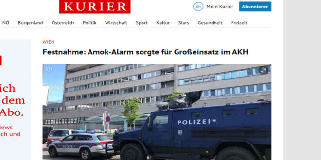 شهد مستشفى “AKH” العام في فيينا عصر الجمعة حالة طوارئ كبرى واستنفاراً أمنياً واسعاً، بعد بلاغ عن وجود رجل مسلّح داخل قسم الأطفال. وعلى الفور، انتشرت وحدات التدخل السريع WEGA بدعم من قوات النخبة COBRA وقوى أمنية إضافية، حيث طوقت المستشفى وطلبت من السكان تجنّب التواجد غير الضروري في محيطه.
