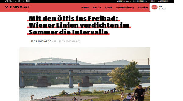 مع بداية موسم السباحة وارتفاع درجات الحرارة، سارعت شركة النقل العام في فيينا (Wiener Linien) إلى التفاعل بذكاء مع تدفق المصطافين، معلنة عن جدول صيفي جديد بدأ العمل به في 17 مايو، يهدف إلى جعل الوصول إلى الشواطئ والمنتجعات المائية أسهل من أي وقت مضى. فهنا، حيث تلتقي الراحة بالحس البيئي، لا حاجة للسيارة كي تصل إلى الماء!