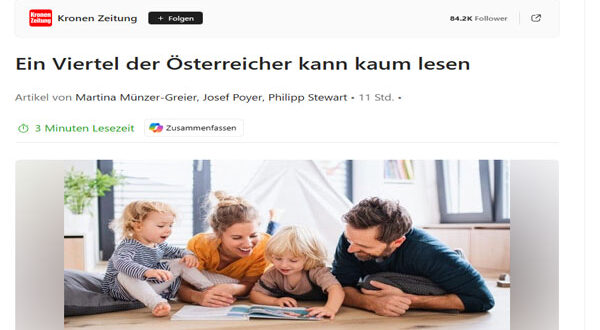 في تطور صادم يعكس عمق الأزمة التعليمية في النمسا، كشفت دراسة رسمية حديثة أن نحو ربع السكان لا يمتلكون مهارات قراءة كافية، في مؤشر على تدهور خطير يطال النظام التعليمي برمّته.