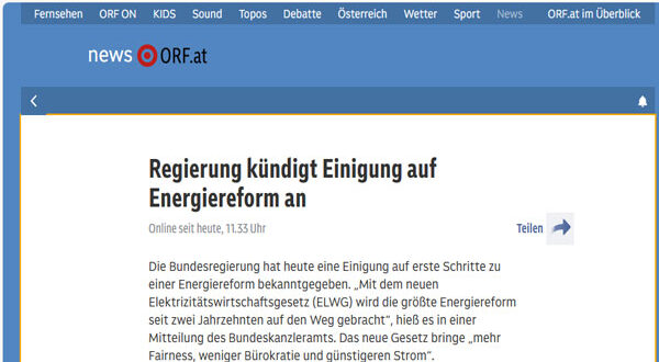 أعلنت الحكومة النمساوية اليوم عن التوصل إلى اتفاق تاريخي بشأن أولى خطوات إصلاح شامل في قطاع الطاقة، في ما وصفته بأنه “أكبر إصلاح في قطاع الكهرباء منذ عقدين”، حسب بيان صادر عن مكتب المستشار النمساوي.