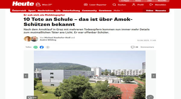 في مشهد صادم هزّ مدينة غراتس والنمسا بأكملها، شهدت إحدى المدارس صباح اليوم حادث إطلاق نار جماعي أسفر عن مقتل تسعة أشخاص على الأقل، بينهم منفذ الهجوم، إضافة إلى عدد من الجرحى في حالات حرجة، وسط استنفار أمني غير مسبوق وإعلان حالة الطوارئ في مستشفيات المدينة.