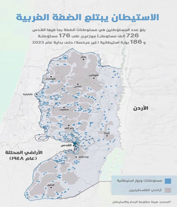 خريطة توضح كيف تبتلع المستوطنات الضفة الغربية