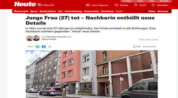تعيش العاصمة النمساوية فيينا على وقع صدمة جديدة بعد العثور على جثة امرأة تبلغ من العمر 27 عامًا داخل شقتها في الحي الخامس “مارغريتن”، وسط شكوك قوية تشير إلى وقوع جريمة قتل.