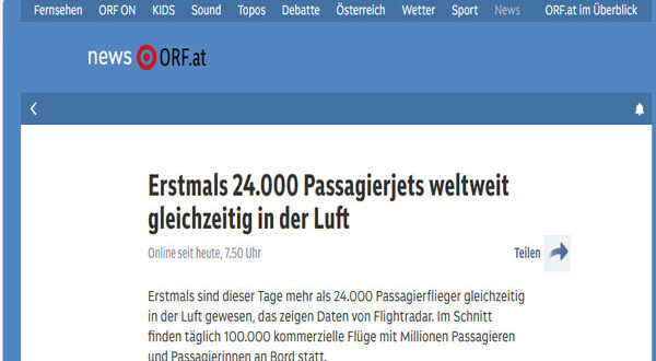تشير بيانات منصة Flightradar المتخصصة بتتبع الطيران إلى أن أكثر من 24,000 طائرة ركاب كانت تحلّق في وقت واحد حول العالم خلال الأيام القليلة الماضية، لأول مرة في التاريخ. وتُنفذ يوميًا نحو 100,000 رحلة تجارية، ما يدل على عودة قطاع الطيران العالمي إلى ذروة نشاطه بعد سنوات من التراجع بفعل جائحة كورونا.