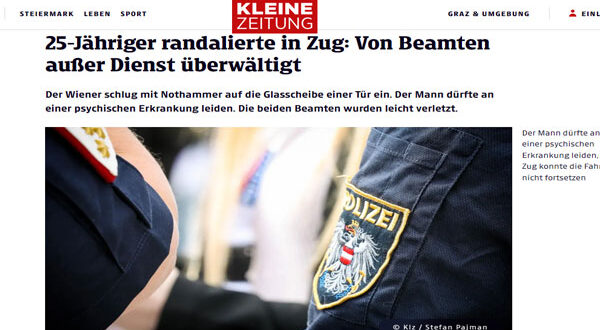 وفي التفاصيل، كان القطار “Railjet 553” متجهًا نحو محطة غراتس الرئيسية عندما بدأ الشاب، وهو من سكان فيينا، في تكسير الزجاج والاعتداء على باب القطار مستخدمًا مطرقة الطوارئ. وقد صرّح شهود عيان بأن الشاب ضرب عدة نوافذ وحاول فتح باب القطار بالقوة وهو يردد رغبته في القفز منه، مستخدمًا قدميه للركل بعنف.