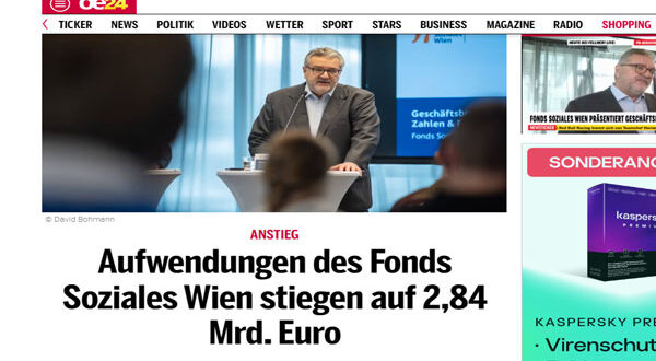 أعلن صندوق فيينا الاجتماعي (FSW) عن ارتفاع نفقاته خلال العام الماضي إلى 2.84 مليار يورو، مسجّلًا زيادة تفوق 10% مقارنة بالعام السابق، وذلك بحسب ما كشفته الإدارة خلال مؤتمرها الصحفي السنوي. ويأتي هذا الارتفاع الحاد في التكاليف نتيجة تصاعد الطلب على خدمات الرعاية، خاصة في مجال رعاية المسنين ومرضى الخرف.