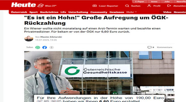 أثارت واقعة شاب نمساوي من فيينا جدلًا واسعًا بعد أن اضطر للذهاب إلى طبيب خاص لعلاج حالة صحية طارئة، ليتفاجأ لاحقًا بأن مؤسسة التأمين الصحي النمساوي (ÖGK) أعادَت له فقط 6.60 يورو من أصل 190 يورو دفعها من جيبه الخاص.