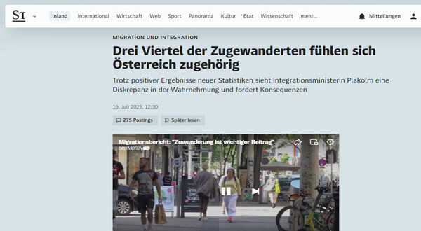 كشفت هيئة الإحصاء النمساوية في تقريرها السنوي حول الهجرة والاندماج لعام 2025، عن نتائج لافتة بشأن مشاعر الانتماء لدى السكان المهاجرين، في وقت لا تزال فيه الحكومة تشدد على ما تسميه “قصورًا في الأداء المطلوب من أجل الاندماج الكامل”.