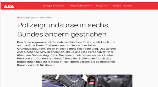 في خطوة أثارت جدلًا واسعًا وانتقادات لاذعة، قررت وزارة الداخلية النمساوية إلغاء دورات التدريب الأساسي للشرطة في ست ولايات اتحادية خلال شهر سبتمبر المقبل، وذلك ضمن سياسة تقشف تشمل جهاز الأمن برمّته. ووفقًا لتحقيقات أجرتها وكالة الأنباء النمساوية (APA)، فإن هذه الخطوة تأتي في إطار إعادة هيكلة سياسة التوظيف الأمنية، وسط تحذيرات من تداعياتها على السلامة العامة.