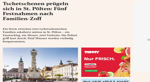 في حادثة أثارت الذعر في قلب مدينة سانت بولتن، شهدت ساحة Neugebäudeplatz عصر الخميس مواجهة عنيفة بين عائلتين من أصول شيشانية، واحدة تقيم في فيينا والأخرى في سانت بولتن، ما أسفر عن إصابة شخصين واعتقال خمسة رجال، أحدهم لوّح بسكين خلال الشجار، بحسب ما أفادت شرطة ولاية النمسا السفلى.