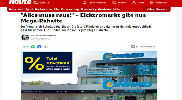 في ظل الأوضاع الاقتصادية غير المستقرة التي تمرّ بها النمسا وأوروبا عمومًا، تتوالى أخبار الإغلاق والإفلاس، وآخرها إعلان إغلاق فرع سلسلة إلكترونيات معروفة في مدينة ليوندينغ بولاية النمسا العليا، ما يضع نقطة النهاية لأحد آخر المتاجر الفعلية التابعة لشركة “كونراد” العريقة.