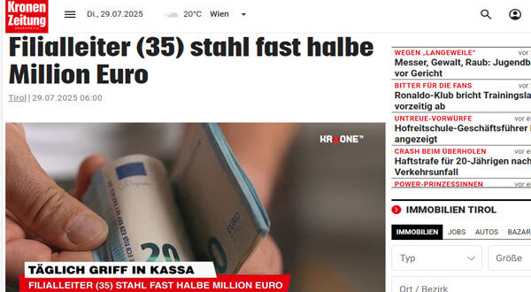 في قضية صادمة هزت ولاية تيرول النمساوية، اعترف مدير فرع يبلغ من العمر 35 عامًا بسرقة نحو نصف مليون يورو من السوبرماركت الذي كان يديره على مدار عامين، في عملية اختلاس ممنهجة شبه يومية، بدأت بعد ولادة طفلته.