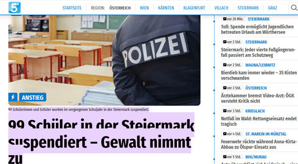 في مؤشر مقلق على تدهور الأوضاع داخل البيئة المدرسية، تم إيقاف 99 تلميذًا وتلميذة عن الدراسة في ولاية شتايرمارك خلال العام الدراسي 2024/2025، بسبب تصاعد أعمال العنف، والتنمر، ومظاهر التطرف الديني والسياسي، حتى في المدارس الابتدائية.