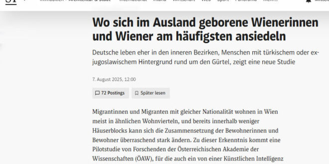 كشفت دراسة نمساوية رائدة عن تجمع الجاليات المهاجرة في أحياء محددة بالعاصمة فيينا، مستندة إلى سجل سكاني اصطناعي تم إنشاؤه باستخدام تقنيات الذكاء الاصطناعي، في سابقة علمية تهدف إلى تحليل أنماط الفصل الاجتماعي بدقة غير مسبوقة، بحسب وكالة الأنباء النمساوية (APA).