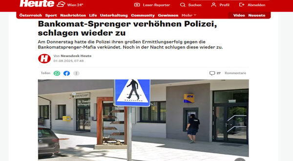على الرغم من إعلان الشرطة الجنائية الفيدرالية في النمسا عن تحقيق تقدم كبير في مكافحة عصابات تفجير الصرّافات الآلية، عادت الجريمة لتطلّ برأسها مجددًا في ولاية شتايرمارك، حيث شهدت بلدة سانت أوزفالد فجر الجمعة عملية تفجير جديدة استهدفت جهاز صرّاف آلي، نفذها مجهولون ما زالوا طلقاء.