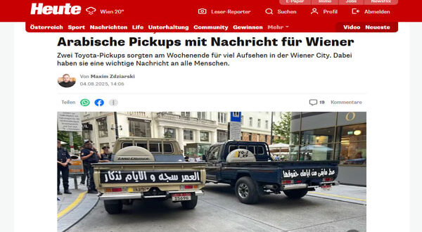 أثارت سيارتان من نوع “تويوتا لاند كروزر” انتباه سكان العاصمة النمساوية فيينا، ليس فقط بسبب وقوفهما المخالف في قلب المدينة، بل بسبب الرسائل اللافتة المكتوبة على خلفيتيهما، والتي حملت طابعًا فلسفيًا وإنسانيًا عميقًا.