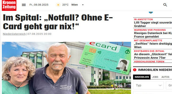 أثارت حادثة في مستشفى مدينة “هورن” بمنطقة “فالدفيرتل” في ولاية النمسا السفلى جدلًا واسعًا، بعدما أكدت سيدة أن زوجها، الذي كان يعاني آلامًا حادة ويقترب من الانهيار، لم يتلق أي مساعدة طبية فورية لأن بطاقة التأمين الصحي الإلكترونية (E-Card) لم تكن بحوزته لحظة الوصول.