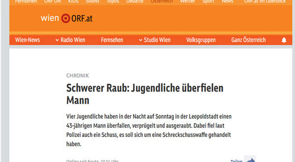 تعرض رجل يبلغ من العمر 43 عامًا في فيينا لاعتداء عنيف من قبل أربعة مراهقين، حيث قاموا بضربه وسرقة حقيبة خصره التي كانت تحتوي على مبلغ مالي من فئة المئات القليلة من اليوروهات، إضافة إلى مفاتيح وبطاقة سحب آلي.