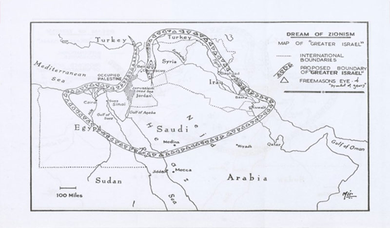 حلم صهيون”، خريطة “إسرائيل الكبرى” في كتاب بروتوكولات حكماء صهيون