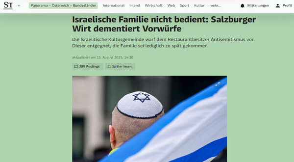 ووفقًا لبيان صادر عن الجالية اليهودية (IKG) في ولايات سالزبورغ، ستايرمارك، وكارينتن، فإن الحادثة وقعت مساء الأربعاء الماضي، حيث زُعم أن صاحب المطعم طرد العائلة، التي كان بين أفرادها أطفال، قائلاً لهم: “أنتم تجوعون الناس في غزة”.