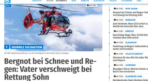 شهدت جبال هوه تاورن في النمسا مساء الجمعة عملية إنقاذ درامية كادت أن تتحول إلى مأساة، بعدما أنقذت فرق الإنقاذ الجوية أبًا وابنته من مأزق خطير على ارتفاع ثلاثة آلاف متر، قبل أن يكتشفوا لاحقًا أن هناك شخصًا ثالثًا – الابن البالغ 22 عامًا – ما زال عالقًا في الجبال.