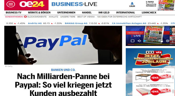 تُعد بايبال أكبر مزود لخدمات الدفع الإلكتروني في ألمانيا، حيث تستحوذ على نحو 30% من سوق التسوق عبر الإنترنت. وتشير تقديرات الخبراء إلى أن عدد المعاملات التي جرى حظرها بسبب الخلل الأخير يصل إلى مئات الآلاف، يجري الآن التدقيق فيها واحدة تلو الأخرى.