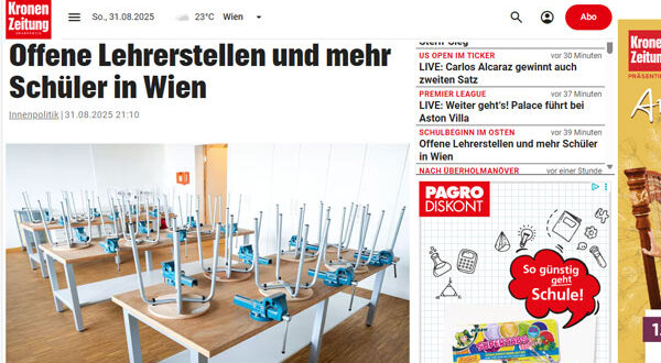 تحت شعار غير مريح: مزيد من التلاميذ وقلة من المعلمين، ينطلق العام الدراسي الجديد في شرق النمسا. فحتى عطلة نهاية الأسبوع السابقة لبدء الدراسة، كانت لا تزال هناك 265 وظيفة تدريسية شاغرة.