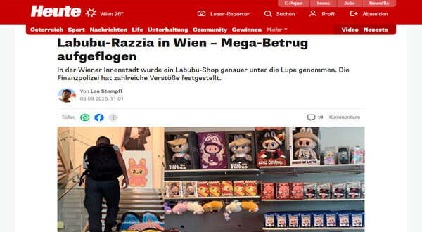 شهدت مدينة فيينا فضيحة جديدة تتعلق بأحد متاجر Labubu الشهيرة للدمى الصينية، بعد حملة تفتيش واسعة قامت بها الشرطة المالية إثر شكوى مقدمة من سلطة السوق المحلية.