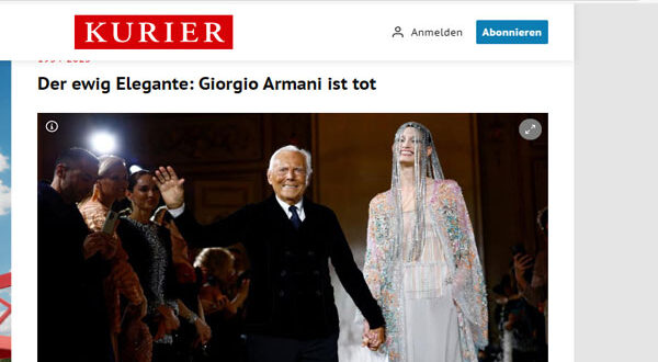 توفي مصمم الأزياء الإيطالي الأسطوري جورجيو أرماني في 4 سبتمبر عن عمر يناهز 91 عامًا. وسيتم فتح قاعة التوديع في Armani/Teatro في ميلانو يومي 6 و7 سبتمبر من الساعة 9:00 صباحًا حتى 6:00 مساءً، على أن تُقام مراسم الدفن بحسب رغبة أرماني الخاصة في نطاق عائلي ضيق.