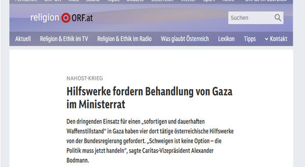 طالبت أربع منظمات إغاثية نمساوية تعمل في قطاع غزة الحكومة الفيدرالية بـ«وقف فوري ودائم لإطلاق النار»، مؤكدين أن الصمت لم يعد خيارًا وأن السياسة يجب أن تتحرك عاجلًا.