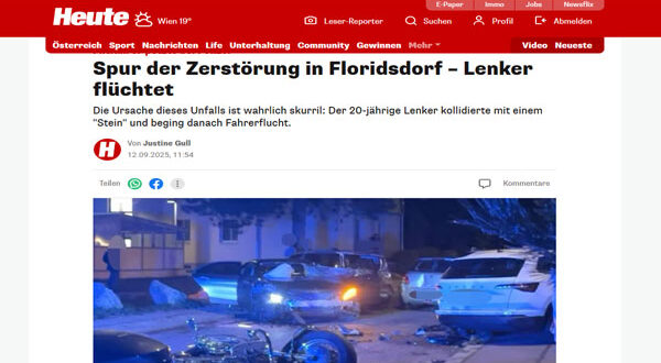 شهد حي فلوريدسدورف في فيينا حادثًا مروريًا كبيرًا مساء الخميس، حين تسبب شاب يبلغ من العمر 20 عامًا في سلسلة تصادمات متتالية أسفرت عن تضرر سبعة سيارات، قبل أن يلوذ بالفرار مع مرافقته.
