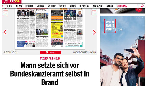 وفقًا لما نقلته صحيفة oe24 النمساوية، قام رجل يبلغ من العمر 54 عامًا بسكب مادة قابلة للاشتعال على جسده أمام المدخل الرئيسي لمبنى المستشارية، ثم أشعل النار بنفسه علنًا.