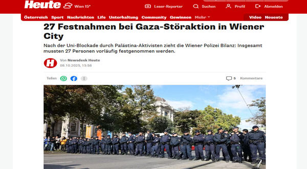 شهدت العاصمة النمساوية فيينا صباح الأربعاء توترًا داخل جامعة فيينا الرئيسية بعد أن أقدم عدد من الناشطين المؤيدين لفلسطين على تنظيم اعتصام وقطع مداخل الجامعة، ما أدى إلى تدخل أمني واسع أسفر عن اعتقال 27 شخصًا بشكل مؤقت.